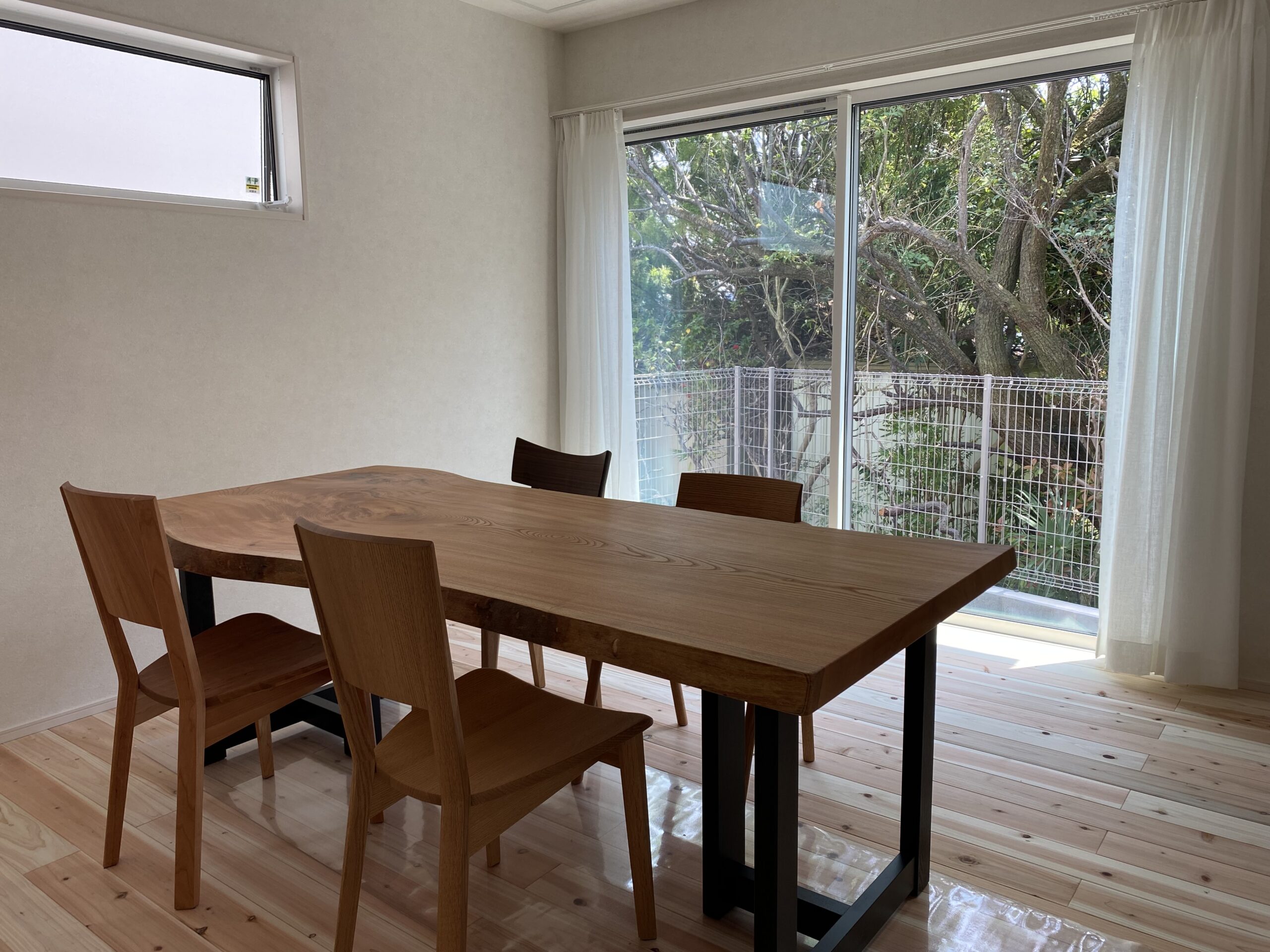 ダイニングテーブルはism で購入して頂いた欅の一枚板!