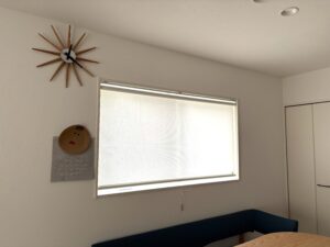 壁面との一体感があり、空間のデザインを邪魔せず、必要な時だけサッと下ろして視線や日差しをコントロールできます。