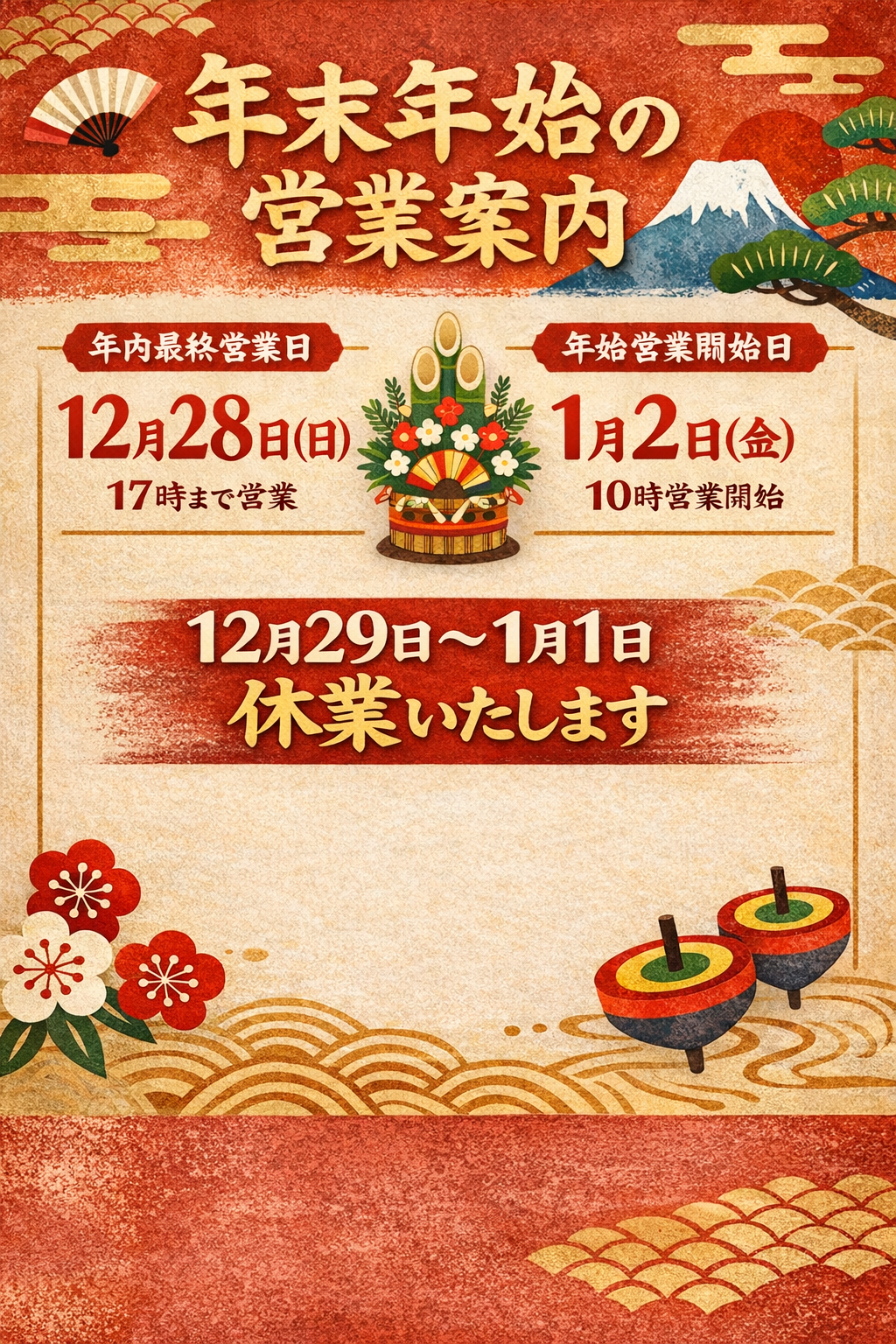 年末年始の営業ご案内