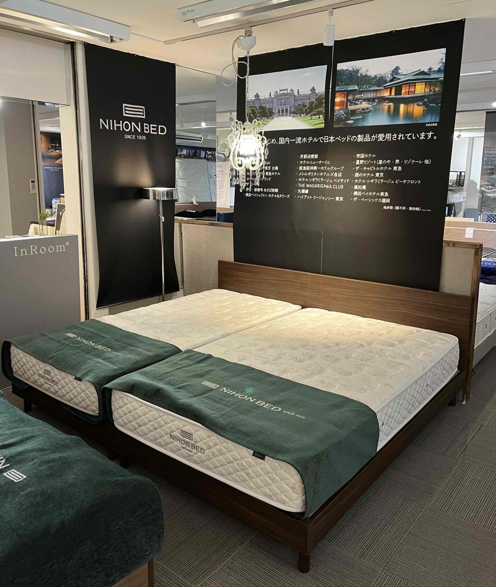 有名メーカーと比較してあまり名前の通ったメーカーではありませんが、日本国内の宮内庁御用達メーカーとして、また海外の賓客をお迎えする東西の迎賓館や、帝国ホテル、ホテルオークラ、ホテルニューオータニのホテル御三家をはじめ、国内一流ホテルで日本ベッドの製品が愛用されている実績のあるメーカーです。